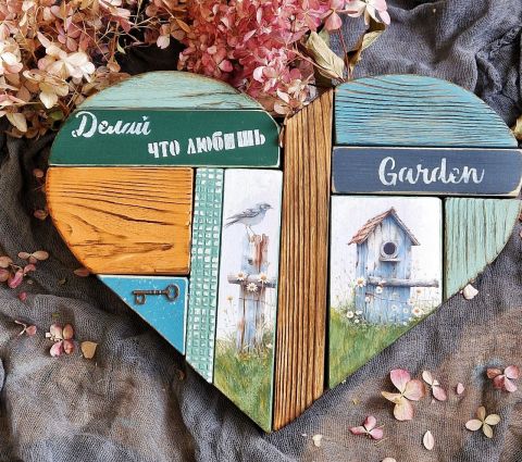 1. Мастер-класс "Очумелое сердце". Микс техник в одной работе. Учимся гармонично совмещать цвета и эффекты. Браш, декупаж, фактуры.
